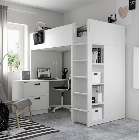 Không gian rất riêng của con bạn để ngủ, vẽ, cất giữ, làm bài tập và chơi với bạn bè. Sự kết hợp giường áp mái này giống như một căn phòng nhỏ trong một căn phòng chỉ trên diện tích 2 mét vuông.